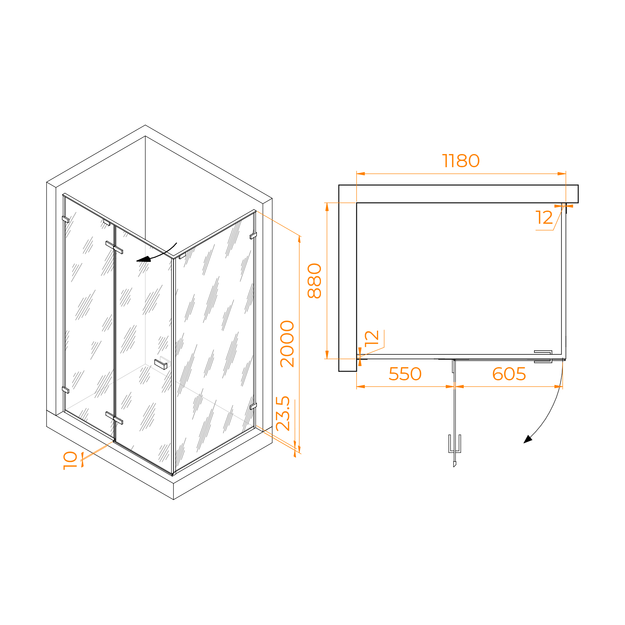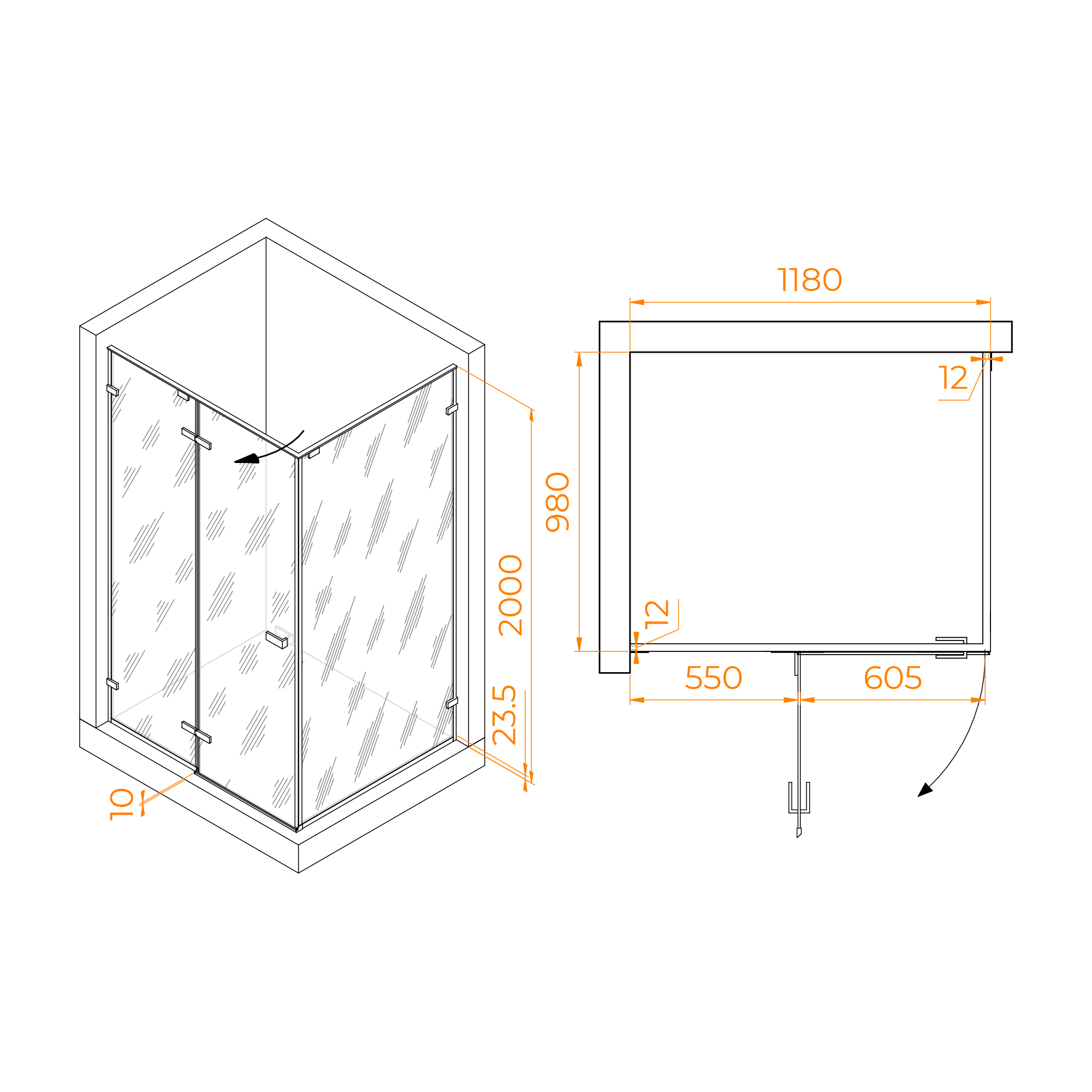 Душевой уголок RGW SV-040B (Матовое-Сатинат, 1200x1000)